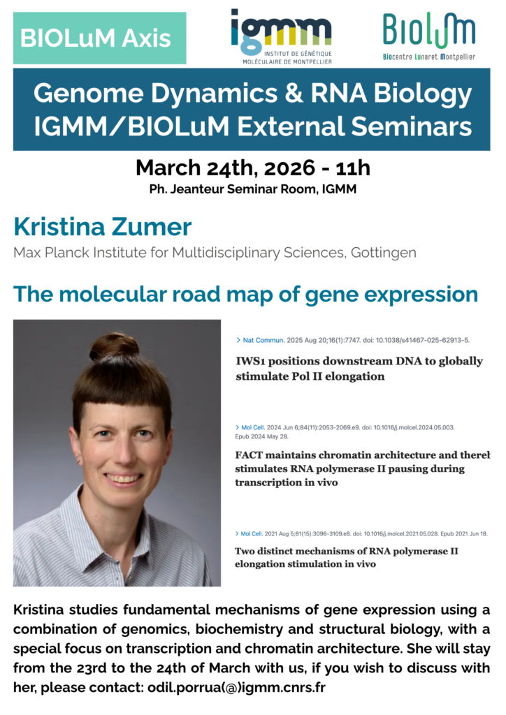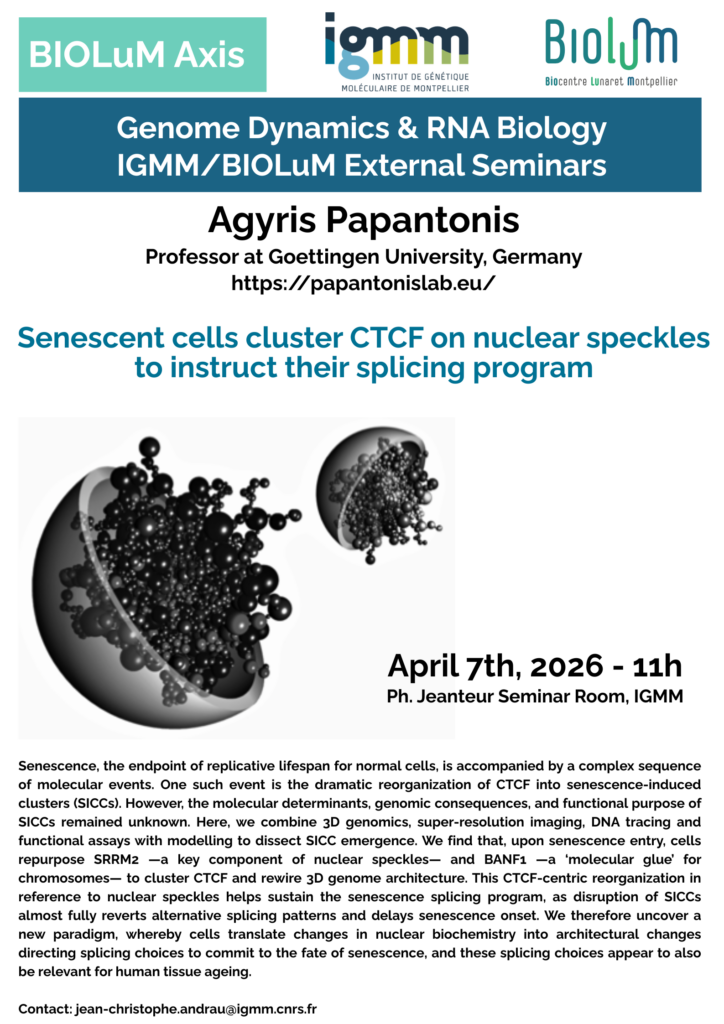 Séminaires externes organisés par l’axe « Dynamique du génome et Biologie des ARNs »
